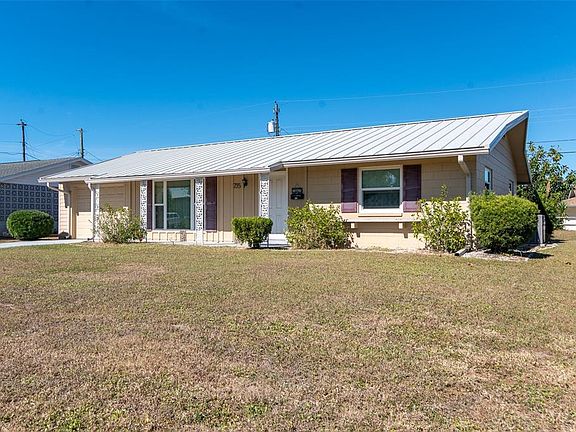 This single-family, two-bedroom, one-bathroom home is located in beautiful Sun City Center. A vibrant 55+ community where golf carts are as common as cars. This part of the community has NO HOA fees. This south-facing home has multiple high-dollar upgrades to include all windows being changed out in 2023 with impact grade windows to include the rear double sliding glass impact- doors. Also a new metal roof was added in 2021 and the A/C was replaced in 2020. Flooring was upgraded in 2015 and the washer and dryer are only 5 years old. The one car garage not only stores your car but also has a workshop in the rear which also stores your golf cart if you decide to have one. The bathroom was nicely updated and the home has been well maintained by the current owner since 1998.