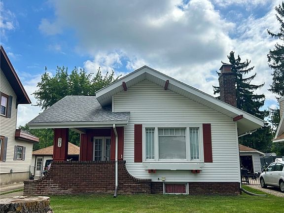 Welcome to this home that is full of charm! The front steps lead to the covered front porch. There is a double entry door that enters into the dining room. Off of the dining room is the living room with lots of windows for natural lighting, a fireplace, and some built in storage that is perfect for holding blankets etc. The kitchen has plenty of cabinets with lazy Susan. All appliances will convey. Down the hall is 2 bedrooms. One bedroom is currently being used for the washer & dryer. The washer & dryer will convey with the home. However, there is still a hook-up in the full, unfinished basement. There is also built in storage cabinet in the hallway. The bathroom has a newer walk-in shower & a linen closet as well. Neutral flooring throughout. The water heater was replaced in 2019 & the HVAC is approx the same age. Roof approx 13 years old. Out back you will find a detached garage & a well-manicured yard. Schedule a tour today!
