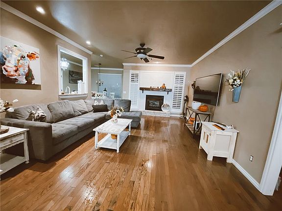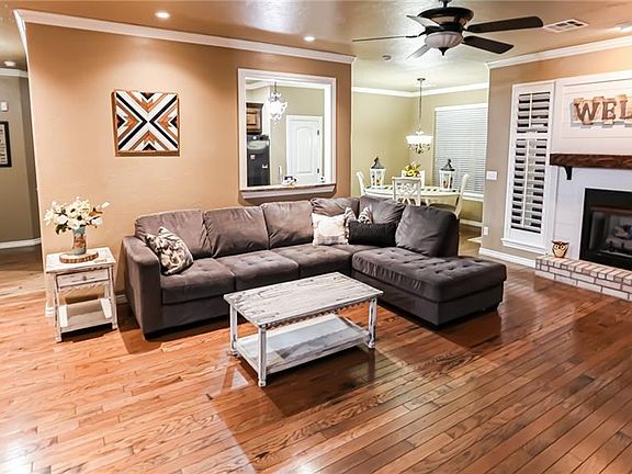 As you walk into this beautiful brick home you are welcomed with the open floor plan and gorgeous view of the gas fireplace. This is a split floorplan with secondary bedrooms to the left and a shared guest bathroom between. The primary suite includes a large bedroom with trayed ceiling, large bathroom with jetted tub. The walk-in closet leaves little to desire. The dine-in kitchen features a full pantry and plenty of cabinet and counter space. As you walk out the back door you have plenty of room to entertain guests of all ages. Book your personal tour today!