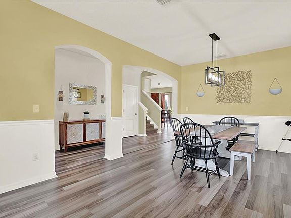 Welcome to this beautifully maintained 3-bedroom, 2.5-bath home offering 2,318 sq. ft. of comfortable living in the desirable Villages of Avalon. From the moment you arrive, you’ll notice the pristine curb appeal and fresh landscaping. Inside, the spacious open-concept layout features a light-filled living area, with new vinyl flooring in 2021, a well-appointed kitchen with a center island, and a dining area perfect for gatherings. The separate formal dining room adds elegance and flexibility for entertaining. Off the dining room there is a generous closet for extra storage. A half Bath and inside utility room for added convenience. Upstairs, the generous primary suite offers a walk-in closet and private en-suite bath, while the two secondary bedrooms also feature their own walk-in closets for ample storage. New carpet in 2021. The versatile loft provides additional space for a home office, playroom, media area, or even an additional bedroom. The home’s AC system was replaced in 2020, offering peace of mind and energy efficiency. Step outside to enjoy a screened-in patio overlooking the fully fenced backyard, ideal for pets, play, or relaxing with serene views of the expansive open area behind the home. Located just minutes from shopping, dining, and the Veterans Expressway, this home offers easy access to Tampa and surrounding areas. Community amenities include a sparkling pool, clubhouse, and scenic walking trails. Clean, well-maintained, and move-in ready — this home is a must-see!