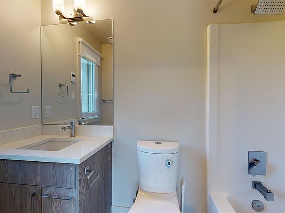 2 Bedroom, 2 full baths corner unit at Orion. This modern, energy efficient home faces North-East (quiet) side of the building and is equipped with a state-of-the-art ventilation system (ERV) which provides fresh air, heat and air conditioning. Orion is built using the most advanced materials and building concepts on the market today. Triple pane windows and doors provide for temperature control, and exceptional soundproofing. This unit was thoughtfully designed with a bright and open floor plan leading to two balconies with great views. All the appliances are modern and energy efficient, including the ensuite washer and dryer. No hydro bill here! Costs are rolled into the strata fees. Complex features include a community garden, dog/bike/car wash. Includes a 1 car private garage.
