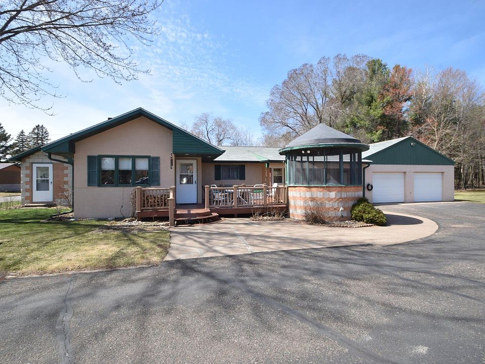 Well-built & renovated stucco & block one level home on a stunning 1.2 acres in town sold turn-key! Gorgeous park-like setting, nice lawn, perennials, blacktop drive, large 2 car att. gar. w/storage, 26x40 det. 2+ car det. block gar w/steel roof, 10' lean-to on 2 sides & 1 car det. gar. You'll love the sprawling nature of this home with cozy family room w/wood burning stove & fieldstone accent wall, large living room off eat-in kitchen w/southern exposure is light & bright w/pine & stone features. 2 BR's, 2 BA's, newer 2nd private living room w/vaulted ceilings, skylights & bath could easily be converted to a 3rd BR/master suite. Ceramic floors throughout, handicap accessible tub, & main fl. laundry. L-shaped deck & gazebo perfect for entertaining! Roof new 2021, maintenance free exterior, boiler new in 2011 when owners bought, in-floor hot water heat, & wood stove for supplemental heating! One-of-a-kind home offers country-living vibes with in-town convenience close to downtown with library, clinic, coffee shop, & more!