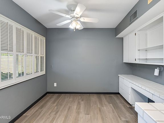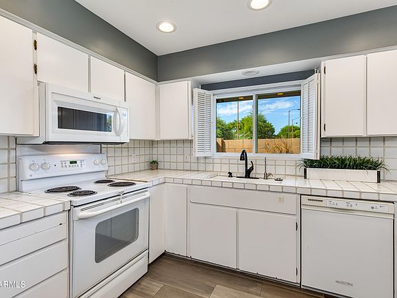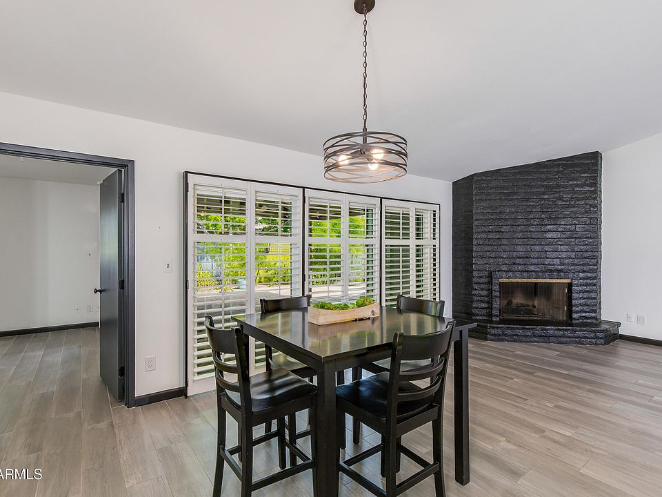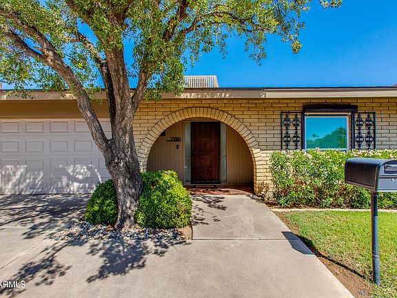 Spacious mid-century modern townhome in a highly sought-after North Central Phoenix community! This inviting single-story floor plan offers a bright living room with a gas fireplace and kitchen with dining area, plus three large bedrooms and two full baths. The primary suite includes both a walk-in and corner closet. Three sets of glass sliders open to a private patio surrounded by lush landscaping. Enjoy a community pool plus a low-maintenance lifestyle close to Murphy Bridle Path, local dining, and everything North Central living has to offer!