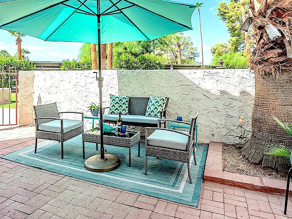 Resort-Style Living in Scottsdale! Stylish ground-floor condo in McCormick Ranch with an expansive private patio—perfect for coffee, sunsets, or entertaining. This condo comes FULLY FURNISHED, making it truly turn-key and ideal for a second home or investor. Enjoy community amenities including a sparkling pool, relaxing spa & fitness center. Minutes from dining, golf, nightlife & spring training, with easy 101 access and just 20 minutes to Sky Harbor. Whether you're looking for a seasonal retreat, full-time residence, or ready-to-go rental, this condo delivers the resort lifestyle you've been looking for!