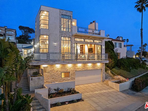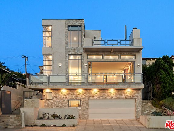 Bring all offers! Just reduced. Welcome to this extraordinary seaside residence, an oasis of luxury offering 4 opulent bedrooms, 4 exquisite bathrooms and a 4 car garage. This stunning property was rebuilt in 2008. Designed by the acclaimed Darrell Dorsey, this home artfully blends indoor and outdoor living, creating a serene atmosphere where relaxation and sophistication meet. As you enter through the grand custom metal door, adorned with a stunning Mother of Pearl design by Maya Romanoff, you are immediately enveloped in an aura of elegance. The expansive open floor plan seamlessly guides you into a chef's gourmet kitchen perfect for hosting guests while offering unobstructed views of the sparkling ocean, vibrant sunsets, and breathtaking coastal landscape. Step outside and experience a seamless transition to the integrated outdoor lounge, complete with a cozy fireplace perfect for unwinding. The panoramic views from the primary bedroom transform this sanctuary into a peaceful retreat, complemented by a private patio that lets you bask in the soothing sounds of the sea. This architectural masterpiece also features two garage structures, with one offering the potential for an ADU conversion. Convenience is at your fingertips with two Tesla charging stations and an electric vehicle charger, reinforcing the home's commitment to modern sustainability. Enjoy expansive rooftop spaces with panoramic, head-on ocean views, creating the perfect setting for a resort-like stay-cation. Alternatively, unwind in your private backyard bathed in sunlight, which is ideal for cultivating your own personal garden. Every detail of this home has been thoughtfully designed to elevate your lifestyle and deepen your connection with the natural beauty that surrounds you. Welcome to your dream sanctuary by the sea.