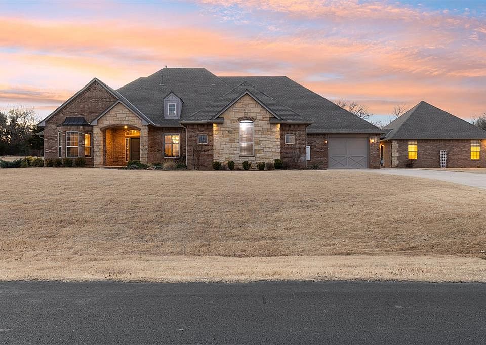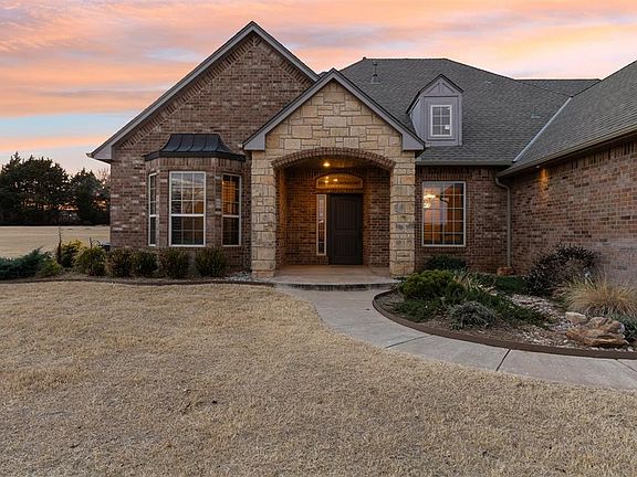 Searching for that rare unicorn property with acreage, a four-car garage, and a dedicated workshop? Look no further! Situated on 2.05 acres MOL, this beautifully maintained, 3 bedroom, 3.5 bathroom one-owner home truly checks every box. The impressive four-car garage includes a two-car side-load complemented by custom-built cabinetry perfect for organization and storage, PLUS a two-car tandem pull-through. For hobbyists or business owners, the 900 sq ft bricked workshop is priceless. Inside, you will find beautiful stained woodwork, plantation shutters, neutral finishes, and thoughtful spaces designed for both everyday living and entertaining. Well equipped kitchen offers a dedicated pantry, prep island, stone accented bar top, and an abundant amount of cabinetry. A private office with beam accent ceiling and a large upstairs game room with wet bar and full bathroom adds both flexibility and function. The home has been meticulously cared for and thoughtfully upgraded, featuring three-unit zoned HVAC (2020/2024), tankless hot water heater, generator, radiant barrier, abundant walk-in attic storage, and a newer roof (2022). Practical amenities continue with an in-ground storm shelter located in the workshop, aerobic system, additional shed/storage building, and an expansive 20+ zone sprinkler system fed by a dedicated well. Home is located within close walking distance to the neighborhood pond and greenspace. Ideally situated within award-winning Edmond schools while benefiting from Logan County taxes is a rare and valuable combination. This exceptional property offers space, functionality, and peace of mind in one incredible package!