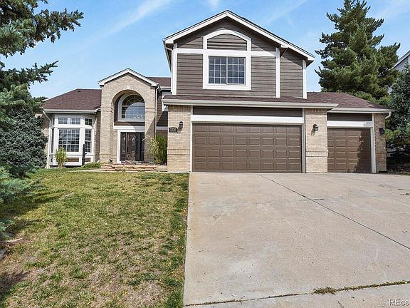 Super desirable .29 acre corner lot at the top of the cul-de-sac. 5 bedrooms, 5 baths, 3-car garage, main floor office, a loft, and 4,683 square feet of living area including the finished garden-level basement. Real wood floors cover the main level. Giant chef kitchen with upgraded cabinets and granite counters. Stainless steel appliances. Family room w/fireplace opens out to large deck and included hot tub. Huge master bedroom w/5-piece bath plus 3 additional bedrooms and a full bath share the upper level. Finished basement includes large 5th bedroom w/ensuite full bath, a theatre, two bonus spaces including a wet bar and 1/2 bath. 3-car garage with rear entry door. Roof new in 2016, furnace and water heater in 2020. Desirable South Pinery neighborhood close to Colorado Horse Park, Bayou Gulch Regional Park, Ponderosa HS and Sagewood Middle School. Discounted rate options and no lender fee future refinancing may be available for qualified buyers of this home. Schedule your private showing now and come home before the holidays!
