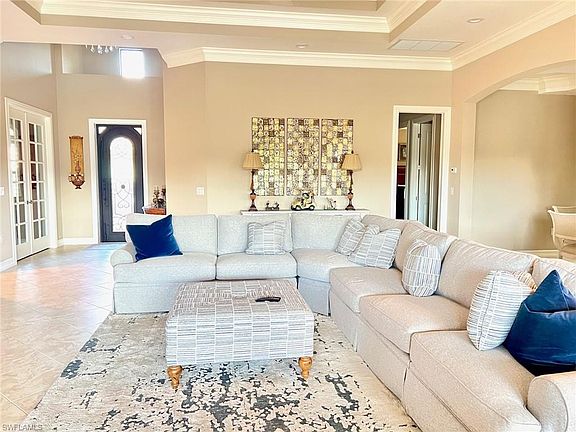 Turnkey Ruffino II model. This 3BR 2.5BA plus Den Lakefront Southern Exposure Pool home has it all. Spacious floor plan with high end fixtures accent the custom designed ceilings with dramatic double crown molding encased within the double coffered ceilings. Upgraded Kitchen Cabinetry with Granite Countertops, and Stainless steel appliances, and impact windows throughout the home. High end furnishings and decor and a Spectacular Oversized Lanai with a Large Pool and Spa overlooks the dramatic fountain in the lake. golf cart. Conveniently located minutes from I-75, Olde Cypress ...INCLUDED ASSOCIATE MEMBERSHIP INCLUDES LIMITED GOLF , TENNIS, FITNESS AND SOCIAL.....