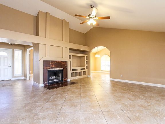 Fenced poolTiled fireplaceOpen floor planBuilt in tv nicheGranite countertopsStone patioRenovated master en suite