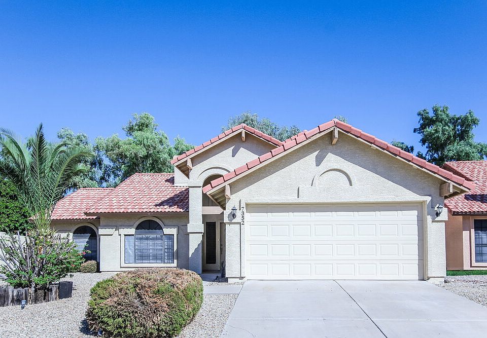 Stunning Spanish-style home featuring an open floor plan, vaulted living room with tiled fireplace, and built in TV niche. Enjoy the renovated chef's kitchen with granite countertops, stainless steel appliances, and plenty of cabinet space. Renovated master en suite, spacious den, and half bath are located on the first floor and two additional bedrooms with bathroom are located upstairs. The backyard is an entertainers delight with the stone patio and fenced pool overlooking the beautiful golf course. Schedule your tour today!!