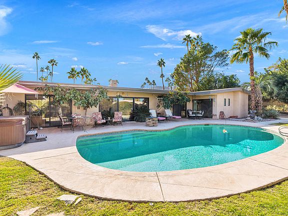 * Desert Modernism Gem in Silver Spur Ranch** Welcome to Silver Spur Ranch, an eclectic neighborhood of Mid-Century Modern homes in South Palm Desert. This residence, designed by the renowned architect Richard A. Harrison--inducted into the Modernism Hall of Fame--was built in 1962. It features an open floor plan with three bedrooms and three bathrooms, encompassing 2,529 sq. ft. The home offers breathtaking, unobstructed views of the snow-capped Mount Eisenhower, Santa Rosa, & San Jacinto Mountains from every angle. Situated on a spacious, SW-facing lot of 13,068 sq. ft. the property showcases a natural desert landscape, with circular driveway, & potential RV parking on the side of the house. The private backyard is a tranquil oasis with pool, hot tub, and outdoor shower. Additionally, there's a water fountain, stunning mountain views, and room for an ideal casita space. Located in the iconic Silver Spur Ranch neighborhood, this home beautifully blends timeless design with incredible potential for customization, all at an exceptional value, especially low annual HOA dues of $225. It is conveniently minutes from the El Paseo Shopping District, The Living Desert Zoo & Gardens, various hiking trails, & golf resorts. This is an extraordinary opportunity to own a piece of this 70th Anniversary Modernism community history. With increasing off-market interest, do not wait! Ideal for buyers looking to personalize a genuine desert modern retreat! Call today.