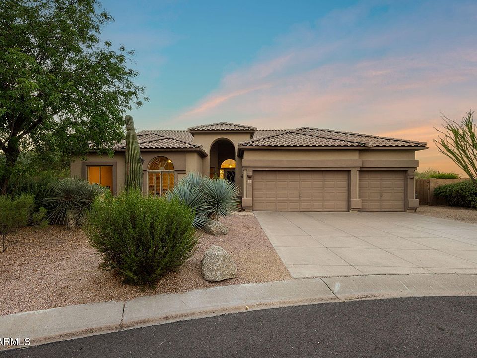 Nestled on a premium oversized cul-de-sac lot, this beautifully remodeled home blends timeless design with modern luxury. This home offers 2,845 sq ft, 4 bedrooms, 2.5 baths, a 3-car garage & sweeping mountain & sunset views. The interior was completely updated in 2024 & features a luxurious remodeled kitchen with designer finishes, all-new LVP flooring, 5'' baseboards, updated light fixtures & modern hardware. The remodeled bathrooms exude spa-like sophistication with modern vanities & quartz counters. Step outside & enjoy a brand-new pool (2024) with travertine hardscape - all framed by serene desert landscaping. Major updates ensure lasting peace of mind, including a new roof (Dec. 2024) with a transferable 15-year warranty, a new water heater (2024), and 2 new AC units (2021 & 2022). With its combination of luxury updates, premium lot, and the lifestyle of Las Sendas' premier golf community, this home is a rare find. Las Sendas offers unparalleled amenities including golf, tennis, pickleball, miles of hiking and biking trails, proximity to top schools, easy access to the 202 freeway, and outdoor adventures in the Tonto National Forest. Your dream home awaits!