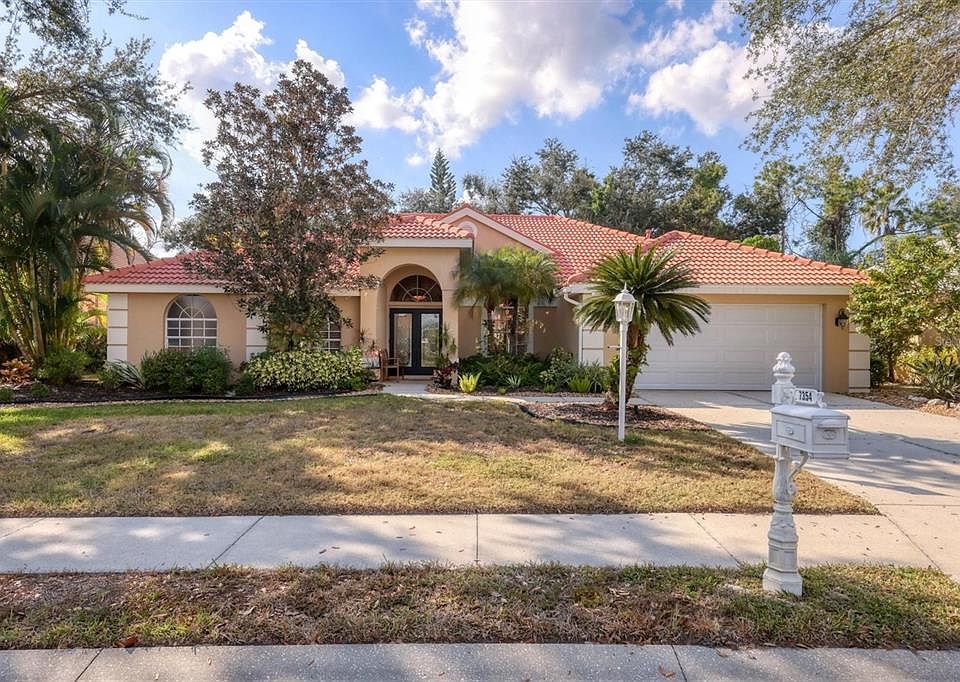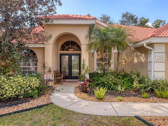 Welcome to this light-filled 3-bedroom, 3-bath home with an office and private pool/spa in the highly desirable Eaton Park neighborhood of award-winning University Park Country Club. Thoughtfully designed with tall ceilings, ceiling fans, hardwood and tile flooring, and inviting architectural details throughout, this residence offers comfort, space, and great potential. Improvements include a NEW ROOF in 2021 and NEW GARAGE DOOR in 2024. You’re welcomed through double glass front doors into the spacious living room/dining room combination, highlighted by vaulted ceilings, wood flooring, and a fully retractable triple slider that opens seamlessly to the screened lanai. The bright eat-in kitchen features granite countertops, tile flooring, a breakfast bar, desk area, and pantry, and flows easily into the inviting family room. Here you’ll enjoy wood floors, built-in cabinetry, vaulted ceilings, and another fully retractable triple slider that fills the space with natural light. A well-appointed laundry room with sink, cabinetry, and LG washer/dryer connects to the 2-car garage, which includes a new garage door. The split floorplan provides excellent privacy, with two guest bedrooms and two full guest baths on one side of the home. The spacious primary suite is situated on the opposite side and offers wood flooring, built-in cabinetry, and a fully retractable double slider to the lanai. The ensuite bath includes a walk-in closet, dual sinks, garden soaking tub, and walk-in shower. A set of double glass doors leads to the dedicated office, perfect for work, reading, or hobbies. Outdoor living takes center stage on the large screened lanai, complete with a pool, spa with waterfall, and a well-equipped outdoor kitchen with grill and sink—all overlooking a peaceful preserve for added privacy and serenity. Offered at a price that allows room for personal updates, this home presents an excellent opportunity to create your dream retreat in one of Sarasota’s most sought-after gated golf communities. University Park Country Club is consistently ranked one of the top courses in Florida featuring 27 holes of championship golf; tennis and pickleball; fitness center, croquet – as well as an array of social and group activities. Just a 15-minute drive outside this peaceful enclave is downtown Sarasota, with shopping, arts & theatres, museums, dining and entertainment, top-ranked healthcare, beaches and SRQ International Airport. Two miles east of UPCC is the convenience of I-75, University Town Center with 300 nationally known and homegrown shops, restaurants, fitness studios, services and attractions and the Nate Benderson Park, home of world-class rowing events. Enjoy the club amenities with the required minimum of a Social membership at UPCC, which is owned by the residents through a Recreation District.