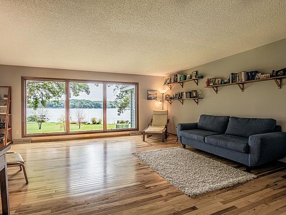 LAKE~LOT~LOCATION. Watch the reflection of the changing seasons in the tranquil waters of recreational Fish Lake. Why go north when every day can be a day at the lake! Welcome to this rambler style home located on a quiet cul-de-sac street with an expansive flat backyard and 65 feet of prime shoreline. Open floor plan with offering unsurpassed views from every room. 2 window-wrapped sunrooms, 3 living/family recreational spaces, office, wet bar, 4 bedrooms with 3 on one level, walk-out, impressive open kitchen and dining combination, great storage+++. Larger master suite with elegant vaulted ceilings and private bath. New superior James Hardie siding, windows, composite decking, water softener, dock, solid wood flooring and more!