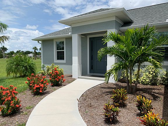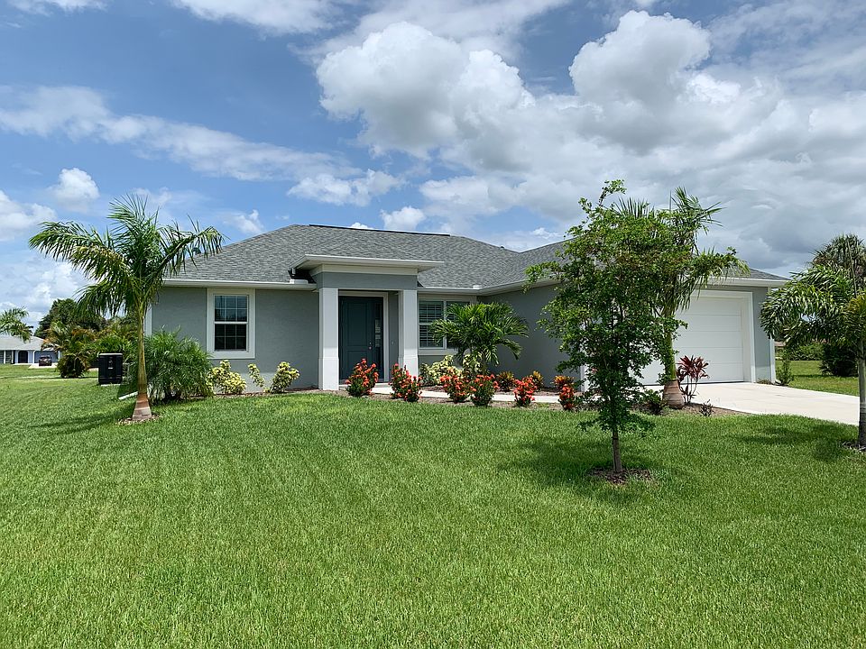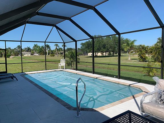 Custom quality built 2018 house with heated and salt chlorinated sports pool. Located in desirable Burnt Store Meadows. Enjoy beautiful privacy views, greenbelt and open lots surrounding. Location close to restaurants, shopping, golf and downtown happenings. Granite counters throughout. Wellborn Wood kitchen cabinets with soft close drawers. Single bowl under mount stainless kitchen sink with Moen Arbor classic stainless faucet. 5 1/4" Crown moldings and custom Plantation shutters Great Room. Included are ceiling fans with lights in the two additional bedrooms. Landscape upgrades large Royal Palms, Shady Lady's and Mango Tree. Outside patio added adjacent to pool deck for additional entertainment space. Upgraded storage capacity in garage with 2 added large ceiling mounted storage racks. Exterior motion activated security lights front and back. High end Melted Ice light fixture dining room. Hurricane Impact windows and doors. Modern Porcelain Plank wood-look tile throughout entire home. Porcelain wall tile for shower and tub/shower all way to ceiling. Recessed LED Disc lights in great room. Brushed nickel hardware throughout. Laundry room includes utility sink. 3 exterior hose bibs. Multiple outdoor weather electrical outlets for easy holiday lighting decor. Builder installed cable outlets in great room and master bedroom. Decora paddle switches. Lennox air conditioning with insulated duct work.