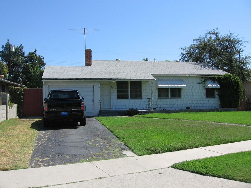 It is a 3 bedroom, 1 bath on a quiet street. House is unfurnished. Kitchen has been remodeled with new cabinets, granite counter tops & stainless sink There are laundry hook-ups (gas) on patio in the back yard. Roof has been recently replaced. 2 bedrooms and family room have window A/C units. There is a working fireplace and gas wall heater. Carpet throughout the living room and bedrooms. The bathroom has been remodelled with new tile, flooring & vanity.Front and back yards are large, with grass and sprinkler systems. Back yard is gated with block walls; very private. Gardener is included. There is a one car attached garage.We are looking for long-term tenants and are offering a one-year renewable lease. Move in cost is first month's rent + security deposit.. Scheduled walk thru is available by appointment. Do not disturb current occupants.Note: A $25 non-refundable credit/security check is required. Non-smokers only.,