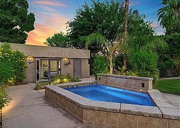 Welcome to your desert retreat! This 3,680 Square foot home is your perfect vacation retreat. PD109 is located in beautiful Palm Desert minutes away from the prominent El Paseo shopping district and the River. This home is highly upgraded, hosting four bedrooms, four bathroom and a theater. The owner has spared no expense creating a perfect vacation rental; from the resort style sparkling pool, salt water therapy spa, to the indoor pool table and bar this home offers everything you will need to entertain your guests. From the moment you enter the great room, you will be captivated by the use of warm colors throughout the great room creating an open and inviting space. Enjoy late night talks in front of a roaring fire, your favorite show, or a challenging game of billiards. The billiards room offers seating for two and a purple felt top pool table as well as a television and exit to the backyard. The entertainment factor doesn't stop there, enjoy your very own private movie theater. The movie theater host seating for eight and comes equipped with 3D capability and 3D glasses, a fireplace, sink and mini fridge. The gourmet kitchen comes equipped with everything you will need to create a masterpiece meal in the utmost elegant manner. Granite counter tops, stainless steel appliances including double ovens paired with plenty of counter space sure to give you enough space for the ultimate feast. Enjoy breakfast at the breakfast bar with seating for five, or a more elegant meal at the dining table with seating for eight. When it's time to call it a night, this home offers supreme sleeping arrangements. The master suite offers a King bed, fireplace, a 42 inch television and two private courtyards. The master restroom is built for maximum relaxation, hosting a Jacuzzi tub for two with a TV in the corner; allow all pre-vacation life to melt away. The guest suites are located in attached casitas, detached from the main house. The second, third and fourth suites offer queen beds, televisions and private entrances from the courtyard, perfect for groups who want their privacy. Take full advantage of the resort style pool and vast detached spa that sits amongst the beautifully landscaped greenery. Grill your favorite meal in the built in barbeque and enjoy the evening ambiance outdoor dining with plenty of seating for all your guests. This vacation rental is an entertainer's delight and will not last, hurry and grab your chance for the perfect vacation!