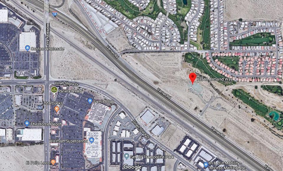 Easy access to all the desert cities and adjacent to many shops / shopping centers - all, just across the 10-freeway. **** There used to be an unfinished home, however the home has been recently demolished. ===>>> Another lot side-by-side also available if decide. Address is: 73562-Armand-Way-Thousand-Palms-CA. <<<=== *** Owned free and clear, tax is up-to-date and current, No HoA. Lot square feet. over 9,100 and 8,700 SF lot. *** Considering exchange with CC or newly Mobile/Motor-home anywhere or will looking into all offers. Buyer and buyer's agents to investigate and verify all aspect on their own.