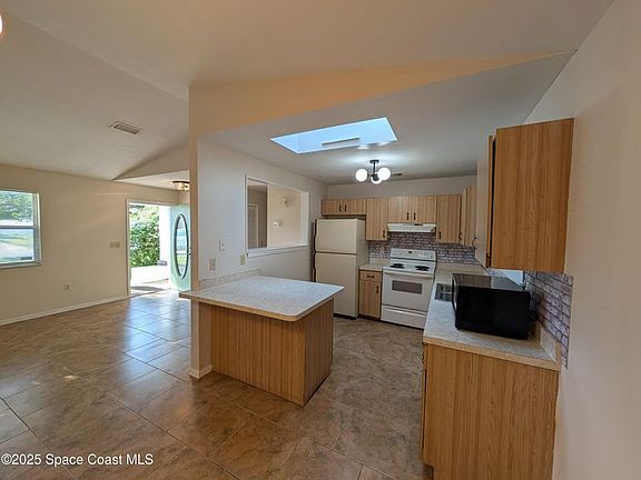 Bedroom Community of Port St John, offering a Large Rental Home with that EXTRA ROOM. This 5/3 has 2 Primary Bedrooms with Ensuite, Walk In Shower. Kitchen centrally located with separate dining room, Slider to Screen Back Porch. Home has Vaulted Ceilings with built in plant shelves up high. Highly Favored Space Coast Jr/Sr High school dist. Close to River boat launch, Views of Launches from your yard, Ocean or Orlando is only about 35 min away...