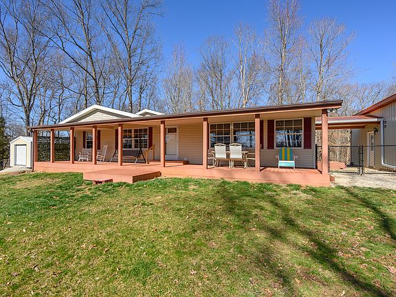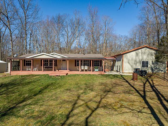 Escape and relax at your own serene park-like setting either for a weekend getaway or live here full time. Home on 1.5 ac lot overlooking 9 ac private lake. 3 Bd w/walk-in closets, 2 Ba, Oversized insulated, heated & cooled detached garage/shop with 9 ft doors. Enjoy the sunset over the lake from the full-length deck. Ample storage both in the home and out. Kitchen with island and pantry. Living area with lake view. Fenced back yard. Floating dock, Fire Pit, Swing. Pontoon boat w/trolling motor included. Backup generator powers the house & garage. New windows and HVAC - 2023 Two large safes in bedroom closets. Municipal water. Just 30 minutes to Columbus.