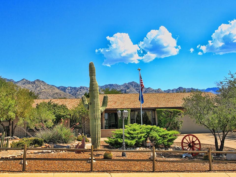 YOUR DESERT OASIS AWAITS! NORTH FACING BACKYARD OFFERS PEBBLE TECH POOL, SHADY RAMADA FOR OUTDOOR ENTERTAINING, CACTUS GARDEN AND POND. LOVINGLY MAINTAINED AND UPDATED BY ORIGINAL OWNERS: NEWER KITCHEN, BATHS, & FLOORING. COOLED ARIZONA ROOM LEADS TO EXPANSIVE COVERED PATIO. OVERSIZED MASTER BEDROOM WITH AMPLE CLOSET SPACE. BEDROOM #2 MAKES A GREAT GUEST ROOM OR HOME OFFICE. FAMILY ROOM WITH FIREPLACE , SEPARATE DINING AND LIVING ROOMS FOR EASY ENTERTAINING. BUILT IN GARAGE STORAGE PLUS MULTIPLE WORKSHOPS AND EXTRA STORAGE ROOM FOR THE HOBBYIST. RECENTLY REPLACED ROOF (08), WATER HEATER AND A/C (2014) MAKES THIS HOME MOVE-IN READY. AGGREGATE CIRCULAR DRIVEWAY ALLOWS FOR EXTRA PARKING. RELAXING AND QUIET SETTING TO ENJOY NATURE AT ITS FINEST.