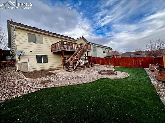 STYLISHLY UPGRADED HOME WITH PIKES PEAK VIEWS AND FINISHED BASEMENT! CONVENIENTLY LOCATED IN SOUGHT-AFTER SPRINGS RANCH COMMUNITY JUST MOMENTS AWAY FROM POWERS CORRIDOR. THIS 4 BDR/3 BATH HOME BOASTS GREAT MAIN LEVEL LIVING WITH VAULTED CEILINGS AND SKYLIGHTS PROVIDING LOTS OF NATURAL LIGHT. BEAUTIFULLY BUILT BY CLASSIC HOMES WITH COUNTRY KITCHEN, BAY WINDOW, SEPARATE DINING ROOM AND LIVING ROOM ALL WITH NATURAL HARDWOOD FLOORS. RECENT UPDATES INCLUDE NEW LIGHT FIXTURES, CEILING FANS, DOOR HARDWARE AND FAUCETS. ALL BATHROOMS HAVE UPDATED CUSTOM TILE WORK WITH GREAT ACCENTS. PRIMARY BEDROOM FEELS SPACIOUS AND ALSO TOUTS VAULTED CEILINGS AND 5-PIECE BATH RETREAT WITH A LARGE WALK-IN CLOSET. MAIN LEVEL ALSO INCLUDES A 2ND BEDROOM & FULL BATH AS WELL AS A TILED GAS FIREPLACE & CENTRAL A.C! FULLY FINISHED BASEMENT HAS A HUGE FAMILY ROOM WITH BONUS SPACE, 2 MORE LARGE BEDROOMS WITH WALK-IN CLOSETS, A ¾ BATH WITH DOUBLE SINKS AND A LARGE LAUNDRY ROOM. WALK-OUT BASEMENT LEADS TO A REAR COVERED PATIO AND XERISCAPED YARD WITH FIRE-PIT AND FLOWER BOXES READY FOR YOUR GREEN THUMBS. MAIN LEVEL DECK IS PERFECT FOR BBQ’S AND GREAT VIEWS OF PIKES PEAK. SPRINGS RANCH ELEMENTARY IS JUST A FEW BLOCKS AWAY! CLOSE TO SHOPPING, SHRIVER AND PETERSON. ALL THIS NESTLED IN A QUITE NEIGHBORHOOD; THIS HOME IS A PERFECT RETREAT YET CONVENIENTLY CLOSE TO AMENITIES.