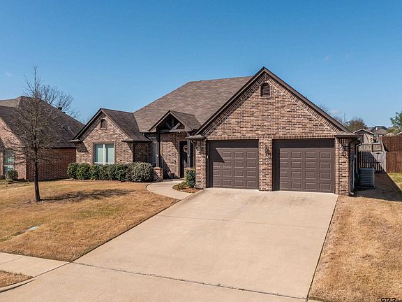 Please take the time to visit this charming, traditional home. As you enter the grand entrance you'll be met with 13 ft vaulted ceilings, an open floor plan, gourmet kitchen with granite countertops, breakfast bar & beautiful custom stained wood cabinets. The home boasts 4 BR, 2 BA, 2 car garage. The home exudes elegance in it's custom trim work, trayed ceilings, heavy moldings, cased out windows & gleaming hardwood & tile floors. The master ensuite bath was remodeled tastefully in 2024 to include handicapped access. You'll love the spacious his & her closets & the rest of the bedrooms roomy closets. There is a relaxing backyard with patio with pull down shades & a lovely gazebo complete with privacy curtains. More features include gutters, sprinkler system & wood privacy fencing. Proximity to Jack Elementary School, an award winning Tyler ISD school. This pristinely cared for & loved home could be YOURS!