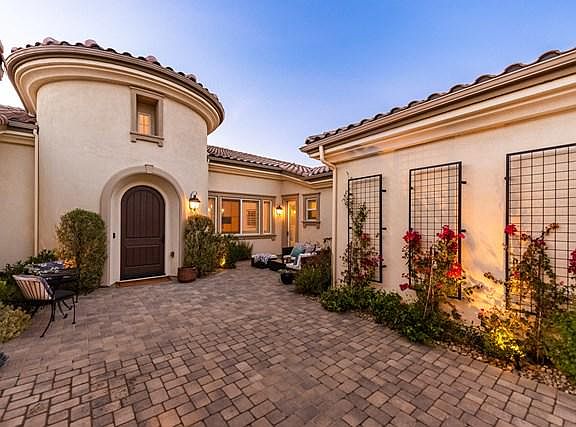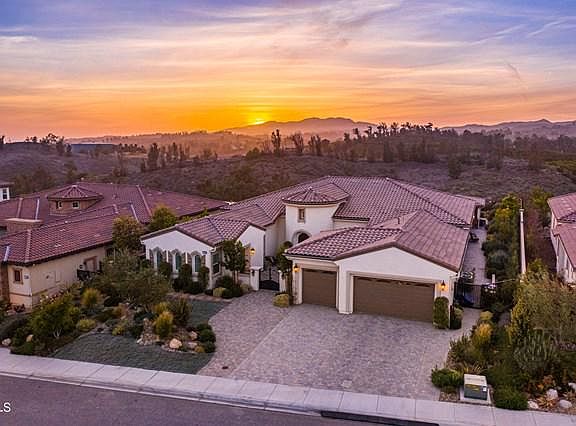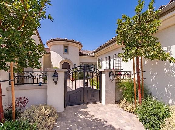California Living at its finest! This spectacular home is located in the desirable gated Master's community at Moorpark Country Club. An elegant single-story home located on a premium view lot, overlooking the beautiful hills of Ventura County. Complete with 4 bedrms, including a Casita, 4.5 baths, plus an office. As you walk through the private courtyard and step into the home you are greeted with gorgeous French Oak hardwood floors throughout, open sight lines, and vaulted ceilings filled with natural light. The 20ft pocket slider doors create an entertainer's dream for indr/outdr living while also capturing the picturesque views that surround the home. The gourmet kitchen has designer cabinets and countertops along with a grand island open to the living and dining room areas. Enjoy the backyard oasis complete with a California patio and a separate outdoor entertainment area which includes a living area with a fireplace, TV, wet bar, built in BBQ, and large firepit. The natural landscape design allows for beautiful scenery and low maintenance landscaping all year round. Enjoy the views from the extra-large master retreat with its own spa-like master bath complete with a soaker tub, spacious shower, dual vanities, and 2 separate walk-in closets. The secondary bedrooms have their own private baths and premium ceiling fans. Other upgrades include Dual zone sound system, smart home tech, 220V outlet in backyrd, and 3 Car garage with 220V Charging station. Truly a must see!