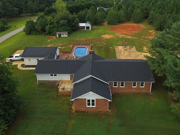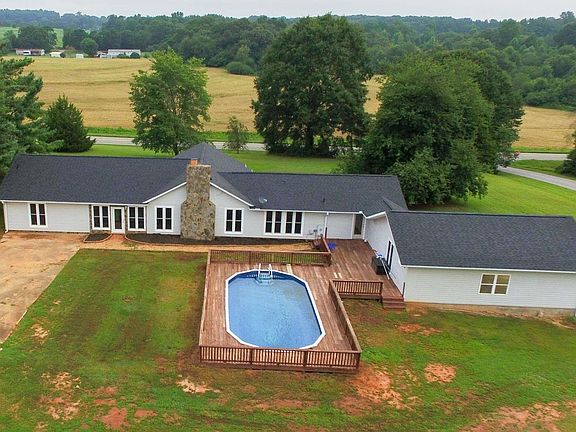 PRICE JUST REDUCED! Don't miss this opportunity - this uniquely designed 3,289 sq ft home is situated on 4.64 acres within the city limits of Carnesville, GA. Built in 1985 this home has 3 bd 3.5 ba with large eat-in kitchen, dinning room, and very spacious family room featuring a double fireplace (one side is used for wood storage) . It also provides tons of storage with several walk in closets, two car garage with attic, and two storage buildings. On hot summer days enjoy a dip in the pool on the back deck, or on cool winter mornings relax on your front porch overlooking a large front yard. Living within the city limits of the Carnesville you will have available the convenience of city water, natural gas, high speed WI-FI, and weekly trash pickup. New vinyl windows were installed in 2014.