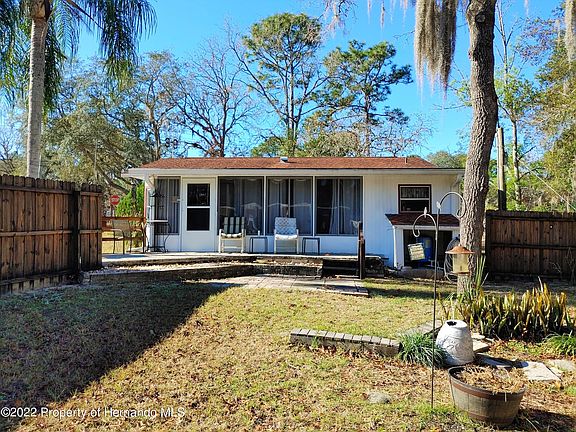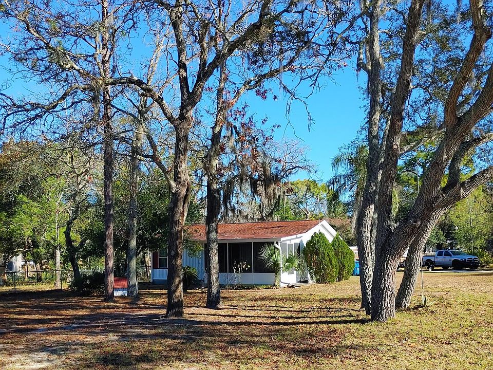 This adorable 2 bedroom 1.5 bath manufactured home sits on a beautiful corner lot in Spring Hill in a quiet neighborhood. This home has been meticulously maintained for years and has been used as a second home. It has a spacious kitchen with stainless steel appliances, plenty of cabinets and an eat-in area. The master bedroom is good sized with a walk in closet and 1/2 bath. The full size bath is spacious and has a walk in shower. Off the kitchen to the back is an enclosed Florida room (19 x 10) and separate laundry room (8 x 10) with full size washer & dryer. Off the kitchen to the front is the living room, and from there you can step through the sliding glass door and enjoy another enclosed Florida room (14 x 10). A detached, closed in carport with storage shed/workshop gives you plenty of room to store lawn equipment, etc. It overlooks the beautifully, partially fenced, oversized yard with an open patio to bird watch and watch the beautiful peacocks visit! The roof was replaced in 2014, the AC was replaced in 2015, newer double pane windows throughout, newer septic, newer propane tankless water heater with filtration, newer carpet and laminate, and newer skirting. No HOA fees or restrictions! This home is conveniently located to restaurants, schools, parks, stores, etc. Stop by and have a look before its too late!
