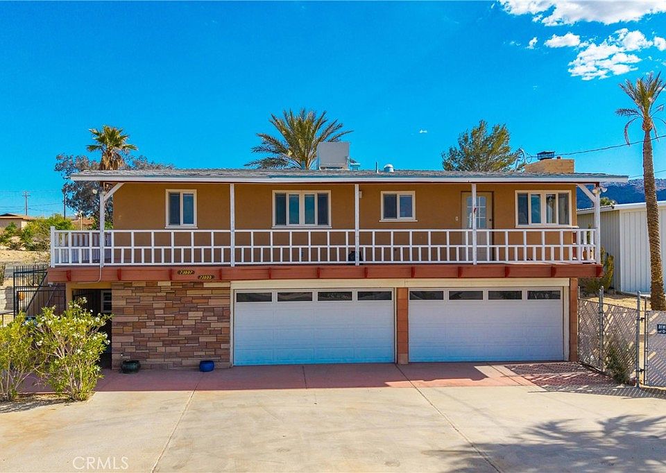 This is the place! If you want to have a home business, or a workshop for all your hobbies. This remodeled 2 Bed 2 Bath home has endless possibilities with a 4 car garage and a large 2000 + square foot metal workshop with a roll up door large enough to handle an RV. Excellent location, close to downtown shopping and a very short drive to the Joshua Tree National Park. This home sits atop the 4 car garage and even has an outdoor lift if you don't feel like climbing the stairs to the house. From both the front and back upper decks you have incredible views of the mountains and valley. This unique home sits on over a half an acre allowing enough room for any future plans.