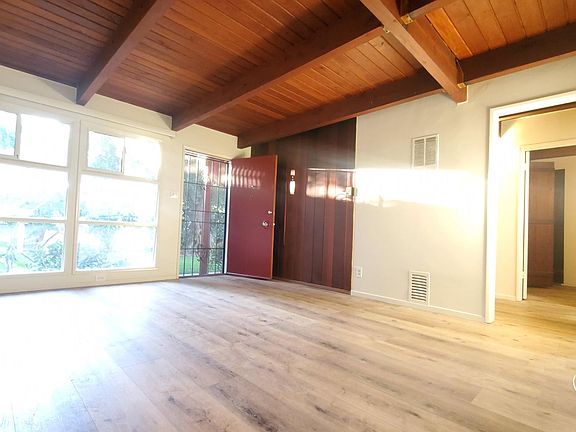 (Regular price $1950/month. Promotional discount of 10% per month for 11 months of a 12 month lease brings monthly rent down to $1755/month, for 11 months of a 12 month lease. ON APPROVED CREDIT) - Showings are EASY! (7am-6pm) Just TEXT Joshua to coordinate 323) @ 606-1348... Cozy Mid-Century-Modern apartment offering 2 small bedrooms, living room and full kitchen w/Granite Counters. Fridge and Stove included. Exposed beam ceilings and wood floors throughout. Updated bathroom with tub. Garden View. Vintage wood paneling exude original charm. 1 car parking in Shared garage. NO PETS (Service Dogs and Emotional Support Animals are Welcomed!) 1yr lease. Tenant pays Electricity and Gas. 1 car parking.