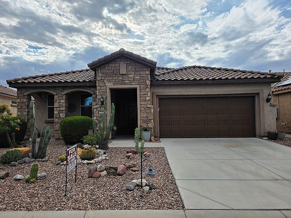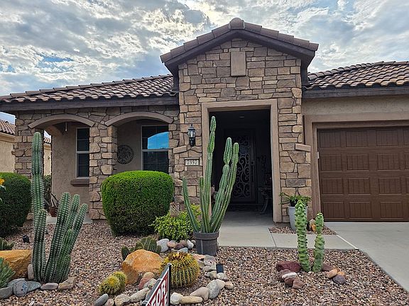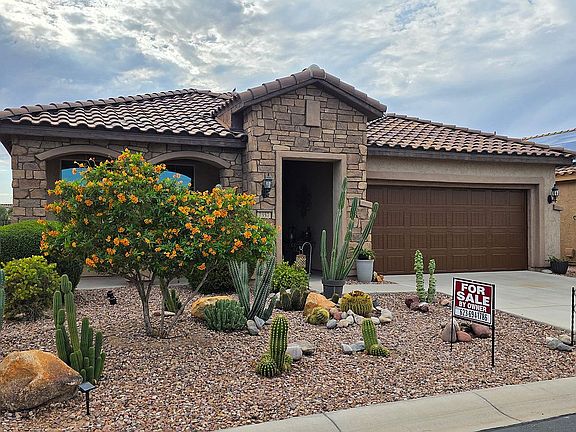 2015 Hideaway model open floor plan, tile floors, granite countertops, stainless steel appliances, tile backsplash and stone tile wall and counter.Beautiful ornate security entry door front and back. Extended Garage,Air conditioner and furnace less than3 years old. Rod iron fence in backyard. Well cared for move in ready. Extended patio with BBQ and bar.Sun City Anthen At Merrill Ranch 55+community with several amenities indoor outdoor pools. gym, dining and activities in a nice community center. On Poston Butte golf course. Turn key ready Questions call 623 694 1786. This Home is in a nice quiet location & very nice neighbors