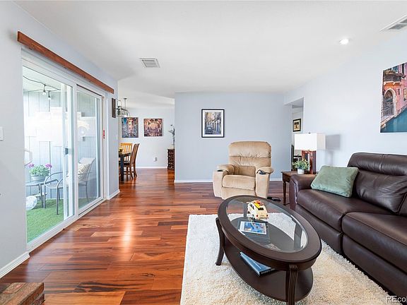 Buyers Got Cold Feet- Your Opportunity to Get In! Bright, quiet, with mountain views, this well-maintained and beautifully updated 2br/2ba penthouse end unit condo in the popular Hunters Hill community is a must see! The spacious floorplan shows off stunning hardwood floors that flow throughout all the main living areas and bedrooms. Treat yourself to meals in the dedicated dining room, which could also be a flex space for a home office, playroom, etc. Endless updates include newer recessed lighting and fixtures throughout, newer kitchen appliances, newer windows and doors, newer HVAC (2021) and Water Heater (2017), newer window coverings, newer kitchen plumbing, newer bathroom vanities! The large primary bedroom has a surprisingly spacious walk-in closet with custom shelving and an en suite bathroom with updated fixtures and oversized custom tiled walk-in shower with upgraded Delta dual shower head and water jets. The second bedroom also has a large closet with custom shelving as well as a pull-down attic stair that leads to a stand-up attic with tons of storage!!! Enjoy the sunsets and mountain views from the private balcony in the summer and cozy up by the updated gas insert fireplace in the oversized living room on the colder winter nights. The affordable HOA dues cover the community pool, tennis and basketball courts, clubhouse, playground as well as water, trash and gas. (fp, hot water heater and furnace are gas so this is a great $ saver). In unit washer and dryer hookups. Desirable top floor with no neighbors above you. Reserved covered carport parking right outside the unit and also a dedicated storage closet. Over $15k in upgrades! Located in the coveted Cherry Creek School District and convenient to restaurants and grocery stores. Easy access to I-25/Dry Creek, Park Meadows Mall, Dry Creek Light Rail Station and the Tech Center. Great opportunity for owner occupants or long-term rentals. Don't miss the 3D Tour: https://www.tourbuzz.net/2120407