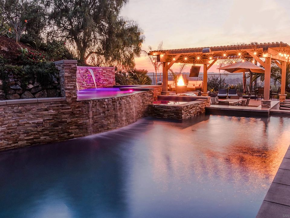 Enjoy this boutique community of 68 homes in Gated Mirasol. Views forever of the blue Pacific in the distance and nature behind as this home backs to Fairbanks natural preserve and trails. Vacation at home with this backyard paradise - Custom pool and spa (with kiddie pool as well), covered Gazebo with BBQ, fire pit and half court BBall. This spacious 5 br home features a guest room on the first level and a separate entry Guest quarters. Remodeled in 2022, you will love the modern finishes and upgrades. Centrally located near all you need - shopping, dining and entertainment with top-rated Poway School District.