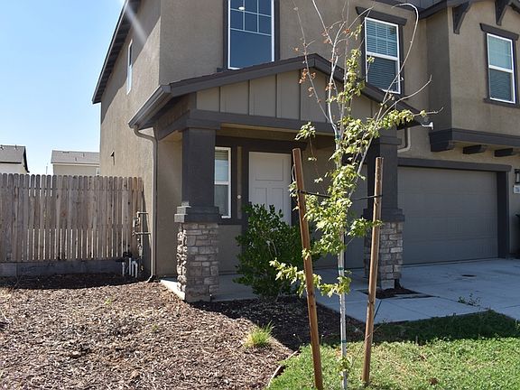 Available now. Located in North Merced. This house features laminate flooring downstairs. The open floor plan features the living room, dining area and kitchen. The kitchen features an island with stainless steel appliances, electric cooktop and pantry. The fridge is included! The downstairs also features a half bathroom. Upstairs features a loft area. All the bedrooms features carpet. The master bedroom features a walk in closet. The master bathroom features double sinks. The laundry room is also located upstairs and includes a washer and dryer. The backyard is low maintenance with concrete, rocks and trees.