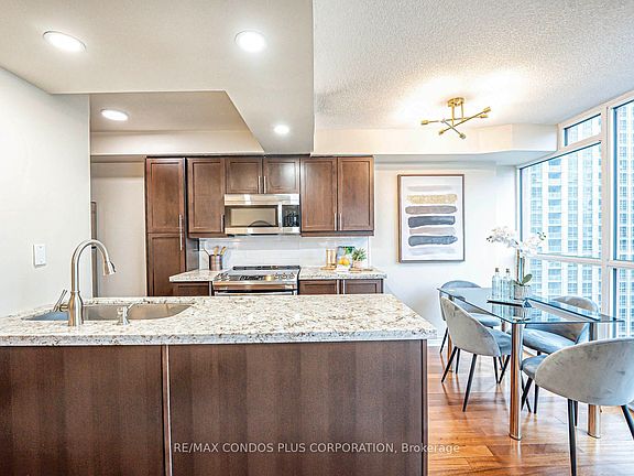 Welcome to Suite 1810 at 736 Bay Street, where value, comfort, and location converge in one of downtown Toronto's most connected addresses. This sun-filled southeast corner unit offers nearly 1,000 SF of elegantly designed and updated living space. Enjoy a spacious 2-bedroom, 2-bathroom layout that offers privacy and functionality, perfect for professionals, executives, downsizers, or buyers seeking an exceptional property in a central downtown setting. Features floor-to-ceiling windows, a renovated,spacious open-concept kitchen with updated full-sized appliances, granite counters, oversized stainless steel sink, new designer light fixtures 2025, new pot lights 2025, and stylish new roller shades 2025. Both bedrooms are generously sized to accommodate king-sized beds, with large double closets and modern spa-like baths. Enjoy living in a well-managed building with 24-hour concierge and outstanding amenities, including an indoor pool, guest suites, a fully equipped fitness centre, sauna, party/meeting rooms, a large common terrace, and more. Located in the heart of College Park, you are just steps to the PATH, subway, Eaton Centre, hospitals, Farm Boy, Loblaw's, Yorkville, and the Entertainment & Financial Districts. This is refined urban living at its best! See Video Tour for more.