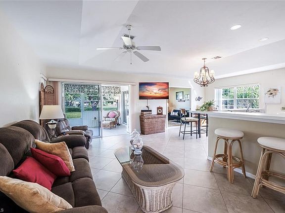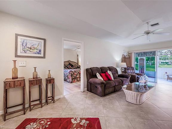 This well-maintained 2BR+DEN/2BA home is located in Riviera Golf Estates, a vibrant 55+ community. The light-filled residence offers 1,235 s/f under air plus a 300 s/f glass-enclosed lanai with tile flooring. The main living area has tile on the diagonal and a high tray ceiling. The kitchen has a pantry for extra storage space. The Master BR includes a spacious walk-in closet. There are dual sinks in the Master BA. The tucked-away back patio is perfect for grilling or simply enjoying the warm climate in winter. There is a two-car garage, accordion shutters for storm protection, and a new water heater (2024). A private well cuts down on your water bill while keeping the landscaping lush year-round. Riviera Golf Estates has resort-style amenities, including a saltwater pool, tennis/pickleball/shuffleboard/bocce courts, an exercise room, a billiards room, and a clubhouse with a full social calendar. All this for a low HOA fee of just $144/month (includes internet), one of the lowest fees in East Naples. Located just ten minutes from 5th Avenue and eight miles from Naples' gorgeous beaches, this home combines comfort, convenience, and affordability in one of the most sought after beachside communities in the country.