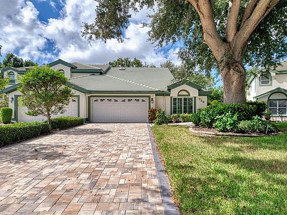 Attractive two bedroom, plus den, two bath, paired villa, in the much sought after Bridle Oaks Community, just off of Capri Isles Blvd. The villa features an open floor plan with cathedral ceilings with skylights in your living room, giving it an even more open and airy feel. Large Florida Room off of the living room with vaulted ceilings.(25X11) Sliders from the Florida Room to the newer caged back porch with an awning, looking out onto the water, golf course and woods. You have an open back porch as well. Kitchen has granite counters, stainless appliances and a breakfast nook. The master bedroom is on the back of the home and features two large California-type, walk-in closets. The home has been well-taken care of and move-in ready. It is being offered partially furnished. The windows were replaced with impact resistant, storm rated type. A brick-paver driveway was completed in 2024, along with a new garage door and water heater. The AC system was replaced in 2023. The tile roof was replaced in 2009. This gated, maintenance free community of 60 homes, offers a heated pool and spa, with clubhouse. This community is tucked beautifully off of Capri Isles Blvd. and Wellfield Park and a great central location and within 4 miles to beautiful downtown Venice and the beaches of the Gulf of America. Come see this great buy today!