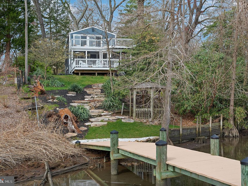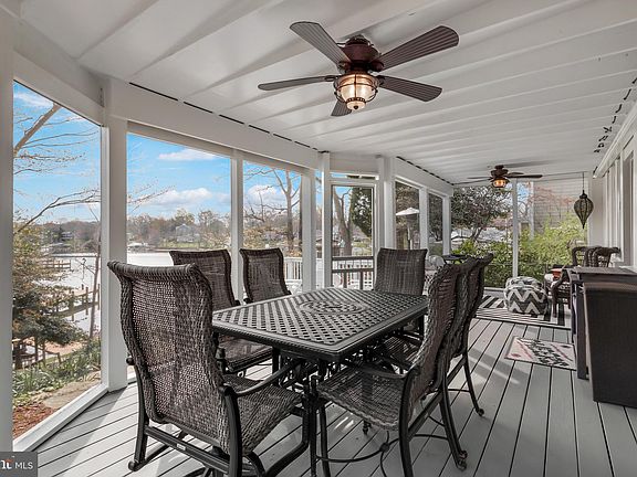 Imagine waking up, walking out onto your expansive deck from your primary bedroom to watch the sunrise over the water as you sip your morning coffee. This Severna Park waterfront home on a half acre offers unbeatable views from both an upper and lower deck, a true entertainers paradise. The lower deck has a screened in porch with overhead fans to keep cool on those hot summer days. The property itself is nestled at the very end of a dead end street, offering utmost privacy. Inside, in the cozy living room, you will find custom stained, knotty pine walls and expansive windows to take in the views. Custom built-in book cases as well. In the kitchen, granite countertops and soft close maple cabinets along with a built in hot water feature for the tea lovers out there. Upstairs you find all 3 bedrooms. The water- facing primary bedroom steals the show with glass sliders all across the water facing wall that open to a large wrap around deck. Truly breathtaking. As you walk the half acre property, you will notice that instead of typical stairs, you have professionally hardscaped imported query stones combined with beautiful landscaping for an esthetic descent to your private pier. The pier has extra piles set for a future boat lift. There is also an unfinished basement with 6ft 3 ceilings that is plumbed for a bathroom and kitchenette. It has its completely own side entrance, not accessible through the main home. Though the current owners use this space as generous storage, you can make it what you will- possibilities galore! Many updates including a brand new roof! Pier painted and sealed, new carpet, all decks repainted, and boiler system updates all in 2022.