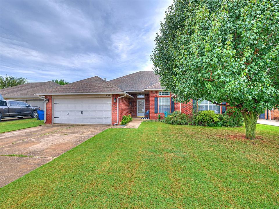 You have to see this adorable home! It's perfectly situated at the end of a cul de sac in the highly sought after Mustang Public School District! The open/split floorplan is excellent for entertaining. The expansive living room boasts engineered hard wood floors, a beautiful gas fireplace, and tons of natural light. The kitchen has a great pantry, ample counter space and cabinet storage, and granite countertops. The primary suite has a double vanity, jetted tub, incredible walk in closet, and stand alone shower. You don't want to miss out on this one!