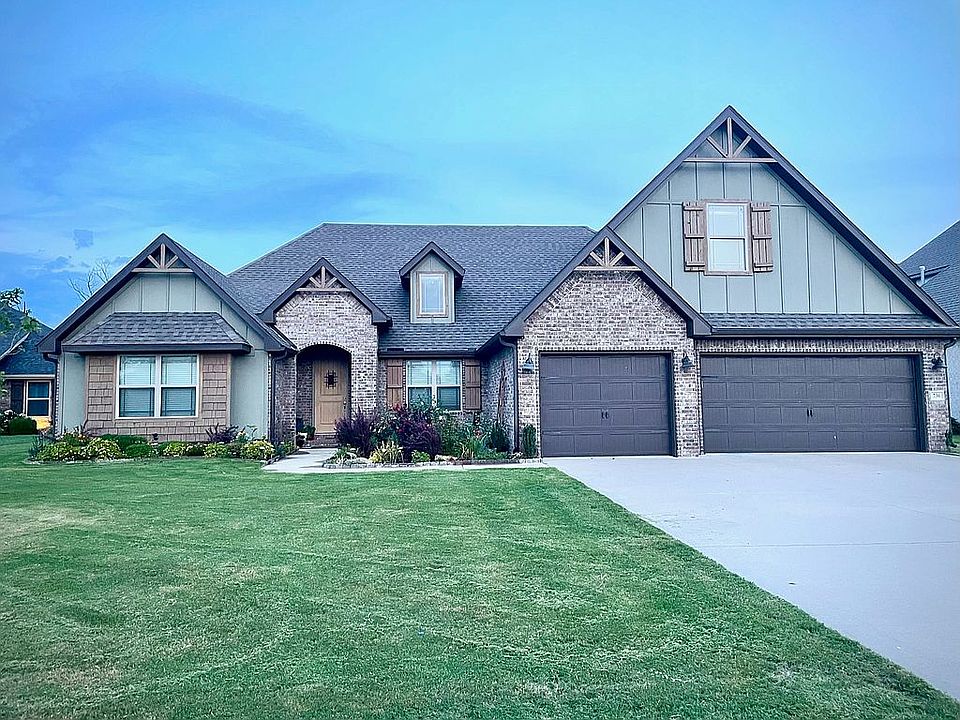 Beautiful home located on a quiet, single street neighborhood, almost at the end of a cul-de-sac in Rollins school district. It has easy access to Fayetteville, Springdale, or Rogers. It boasts welcoming flower beds with stone borders on each side of the 8 foot front door. As you enter, you will notice a large entryway that leads to the spacious living room with a floor-to-ceiling brick fireplace surrounded by built-in shelving on both sides and an eye-catching cedar mantel. The extra large windows frame large oak trees in the backyard with wide open spaces behind. The sunrises are picturesque from a living room chair. The kitchen is an entertainer’s dream. It has a 12 foot island with unique granite and an oversized, incredible pantry of your dreams. There are plenty of drawers including deep drawers for pots and pans, as well as many cabinets throughout.There is no lack of lighting with the under-cabinet lighting, canned lighting, and island lighting just in the kitchen alone. The kitchen is truly the hub of the home! The dining area is spacious with large windows and a large light fixture to fill the room. You will have no problem hosting large crowds! The office/playroom is off the living area with a small closet attached and a large window overlooking the front yard. The master bedroom has four windows and plenty of room for a chair, exercise equipment, etc. In the master bathroom you will find double sinks, a whirlpool bath, a tile shower, and a large square window that makes it bright and airy. It leads to the master closet that has plenty of space for all those clothes. There are three extra bedrooms with 9 foot ceilings. Two are connected by a jack and jill bathroom with double sinks. Both rooms have two windows and spacious closets. The third over-sized bedroom is beside the third bathroom and has a beautiful window overlooking the front yard. The three car garage with a floored attic and keypad entry will give you plenty of room for storage. As you head out to the back patio, you will notice a privacy fence with 2 gates on each side of the house and a 4 foot iron fence along the back for the perfect view of land you don’t have to pay the property taxes on. With an east facing backyard, the patio is perfect for relaxing in the shade during the evenings. You could also slip down to the Tontitown park for the evening since it’s right down the street. This neighborhood is full of wonderful people and has truly been an incredible place for our family. Come visit and see if this might be the next place for your family!