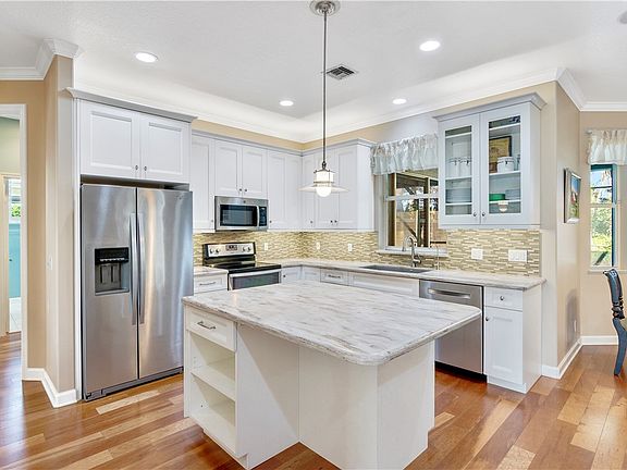 Solar heated screened-in poolSplit floor planStunning countertopsUpgraded whirlpool appliancesDecorative tile backsplash