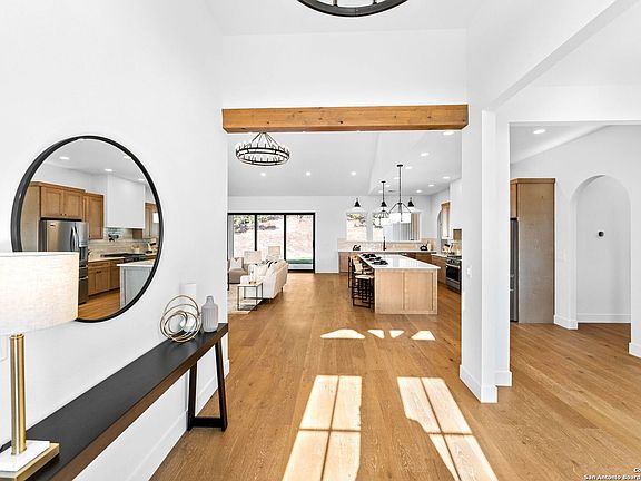 Experience Hill Country elegance in this new stunning modern farmhouse located in the established community of The Crossing in Boerne, TX. Nestled on just over an acre of land, this is a 4 bed, 3.5 bath, + office home that blends luxury craftsmanship with everyday comfort. Step through the double wrought iron front doors into a bright, open living space featuring vaulted ceilings, hardwood floors, and a wood-burning fireplace, thoughtfully designed with custom details throughout. The gourmet kitchen includes quartz countertops, custom hood, huge eat-in island, and gas cooking - and the extended butlers pantry provides an additional prep and cook space - great for both entertaining and family gatherings. Seamlessly transition outdoors through the oversized patio slider to a private outdoor space equipped with an outdoor kitchen, perfect for enjoying Boerne's beautiful evenings. This property truly captures the charm of country living with modern luxury - don't miss your chance to call this retreat your own.