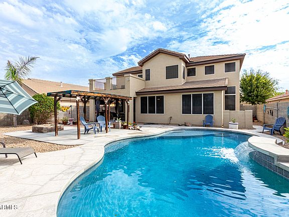 GORGEOUS POOL OASIS HOME & BRAND NEW ROOF! Welcome to 736 N Bridlegate Dr, where an incredible location, and show-stopper curb appeal come together in the heart of Gilbert! Step inside the vaulted, light-filled living room/dining area. You'll find a versatile double-door office off the entry and a full bath on the main floor—perfect for guests or remote work. The family room with cozy fireplace and custom built-in flows seamlessly into the gourmet kitchen, featuring epoxy counters, and spacious island. Upstairs you'll find a loft/flex space and three generously sized bedrooms. The primary suite is a true retreat with a luxurious soaker tub, en suite bath, and sliding doors leading to a private walk-out balcony with sunset views. Then step in to your entertainer's dream backyard complete with a large shaded patio, built-in gas BBQ, and a stunning pool featuring a baja shelf, sheer water feature, and nearby raised firepit, true resort-style living! This home is move-in ready with newer A/C units & carpet, new interior/exterior paint & gas water heater. The full 3-car garage has built-in cabinets and insulated garage door. All this and just steps from the elementary school, minutes from shopping, dining, and easy access to both the 60 & 202 freeways. Don't miss this rare Fulton gem - truly a must see!