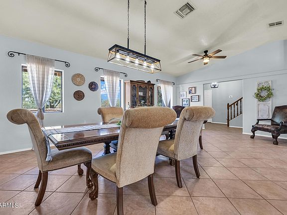 Experience luxury on a sprawling 1.2-acre lot with breathtaking Superstition Mountain views. This 3-bedroom, 3-bathroom home offers spacious living areas filled with natural light. Recent upgrades include a new roof, AC, and sprinkler system. The master suite features a cozy fireplace, complemented by a versatile den, an inside bar, and an outdoor BBQ area. A 1,000 sq. ft. casita (not in total sq. footage), horse privileges, and ample land make this property highly expandable. The RV gate leads to a renovated vintage trailer (available separately). Located just 10 minutes from shopping and dining, this home offers the most affordable price per square foot in the area. Qualified buyers can assume the loan at a fantastic 3.6% rate. Highly motivated sellers!