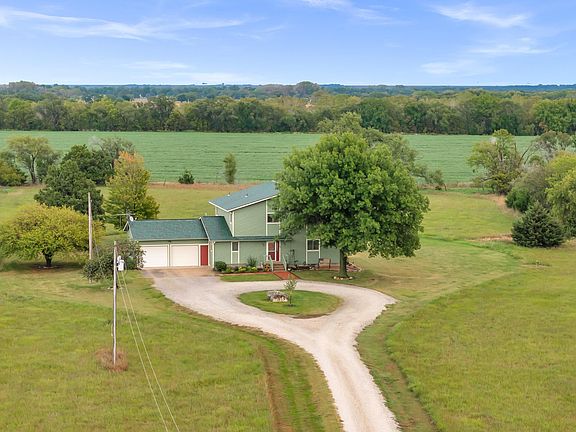 Passive Solar Country Home on 8.3 Acres – Beautiful Setting and Thoughtful Design This one-owner passive solar home sits on 8.3 peaceful acres just off Highway 50, offering energy efficiency, comfort, and stunning country views. Designed with purpose, the home is angled to capture the sun’s warmth in winter, while the south overhang provides cooling shade in summer. Inside, the large living room features oak built-ins, vaulted ceilings, and expansive south-facing Andersen windows that fill the space with natural light. The kitchen includes all appliances, a wall of pantry storage, and connects conveniently to the laundry room—washer and dryer included. The loft overlooks the main living area and offers an ideal spot for an office or reading nook. The home offers two en-suite bedrooms, one on each level, and a finished basement with a large rec room plus an additional room with an egress window—ready to become a third bedroom with the addition of a closet. Enjoy quiet evenings on the large, partially covered deck, perfect for outdoor dining or sunset watching. The property features a circle drive, natural gas (Atmos), rural water, septic system, and a new roof installed in 2021. Nicely landscaped and perfectly situated on blacktop access just minutes from town, this home offers the best of sustainable country living with modern convenience.