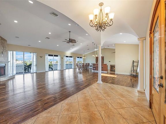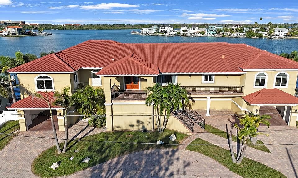 Welcome to one of the most unique and desirable waterfront properties in Madeira Beach. Situated on a massive 13,500+ square foot lot with 145 feet of water frontage, this estate offers an unparalleled opportunity for boaters, water lovers, and those seeking true Florida luxury. Waterfront lots of this size are extremely rare, and with direct access to the Intracoastal Waterway, you will enjoy quick and easy boating to the Gulf of Mexico. The oversized dock can accommodate nearly any size vessel, making this a dream setup for yacht owners and avid boaters alike. The main residence, built in 2009, features 3,750 square feet of heated living space with five spacious bedrooms and four full bathrooms. Designed with both comfort and elegance in mind, the home boasts high ceilings, abundant natural light, and modern upgrades throughout. Inside you will find a stunning open floor plan with hardwood and tile flooring, a welcoming foyer with grand double entry doors, and a living area that opens up to breathtaking waterfront views. The chef’s kitchen is complete with rich wood cabinetry, granite countertops, stainless steel appliances, a large center island, and pendant lighting, making it ideal for entertaining. Additional highlights include an expansive waterfront balcony stretching the full length of the home, a durable tile roof, a ten-car garage providing incredible storage or car collection space, a private elevator for convenience and accessibility, and a spacious laundry room. The elegant entry staircase enhances the home’s curb appeal and sets the tone for the luxurious living within. Out back, the property offers ample room to relax, entertain, or simply take in the serene waterfront lifestyle. The oversized lot also provides opportunities for future expansion, outdoor living enhancements, or the addition of a custom pool overlooking the canal. This home truly combines the best of Florida living with a rare oversized lot, premier waterfront access, and a modern, spacious home. Ideally located just minutes from the sandy beaches of Madeira Beach, top-rated dining, shopping, and vibrant entertainment options, this property offers the perfect balance of privacy and convenience.