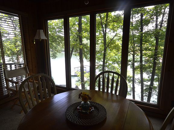 Located in the sought after Reed Creek Point area, this home, sited on 2 lakefront lots, has 3 bedrooms and 3 baths over two finished levels, and the finished terrace level has plenty of room for additional sleeping. The main level has a sun room and an open deck overlooking the lake. The view to the main channel is spectacular as the corps line is only 25' away from the water's edge. The improved path to the dock makes access to the max-size double slip dock a breeze. You won't need to worry about moving your dock around as there is over 30' of water depth underneath the dock. A view of the rising sun, as seen from the sunporch, is beautiful. Completely furnished for weekend or year-round living! Additional 2 acre lakeview lot available across the street.
