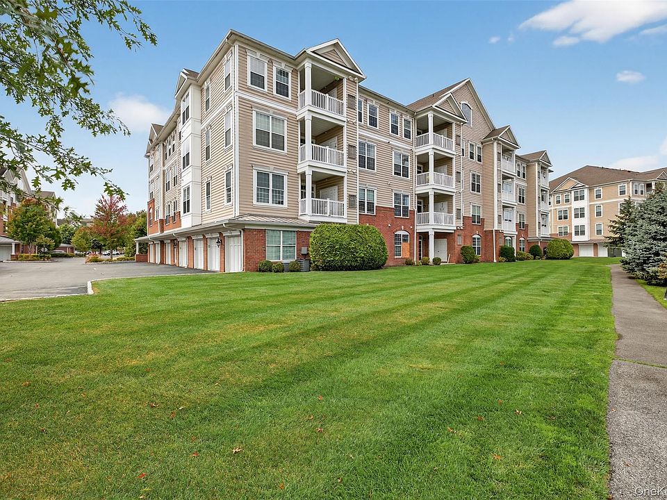 Welcome to The Regency at Fishkill, this 55+ Gated Community that offers a low-maintenance lifestyle in a gated community, with a variety of convenient amenities. Stay active in the fitness center, or spend time in the clubhouse sharing time with neighbors & friends, complete with a fireplace, full kitchen, and a meeting room . The community also has a heated pool, a separate grilling area, a gazebo with rocking chairs for outdoor enjoyment, and let's not forget the walking trails with benches along the way. This light-filled 1-bedroom, 2-bath unit features an open floor plan with high ceilings, crown moldings, and hw floors throughout. Spacious kitchen (with bar seating, stainless-steel appliances and granite counters) opens to the dining room and living room with large balcony. The primary suite offers a sitting area, 2nd door to balcony, walk-in closet, dual vanities, a soaking tub, and a separate shower. The den adds flexibility, easily serving as an office or guest br. The oversized one-car garage on the ground level provides extra storage and direct indoor access to the building. Conveniently located to local shops, restaurants, and medical offices, as well as major highways, the Metro-North rail line, and regional airports.